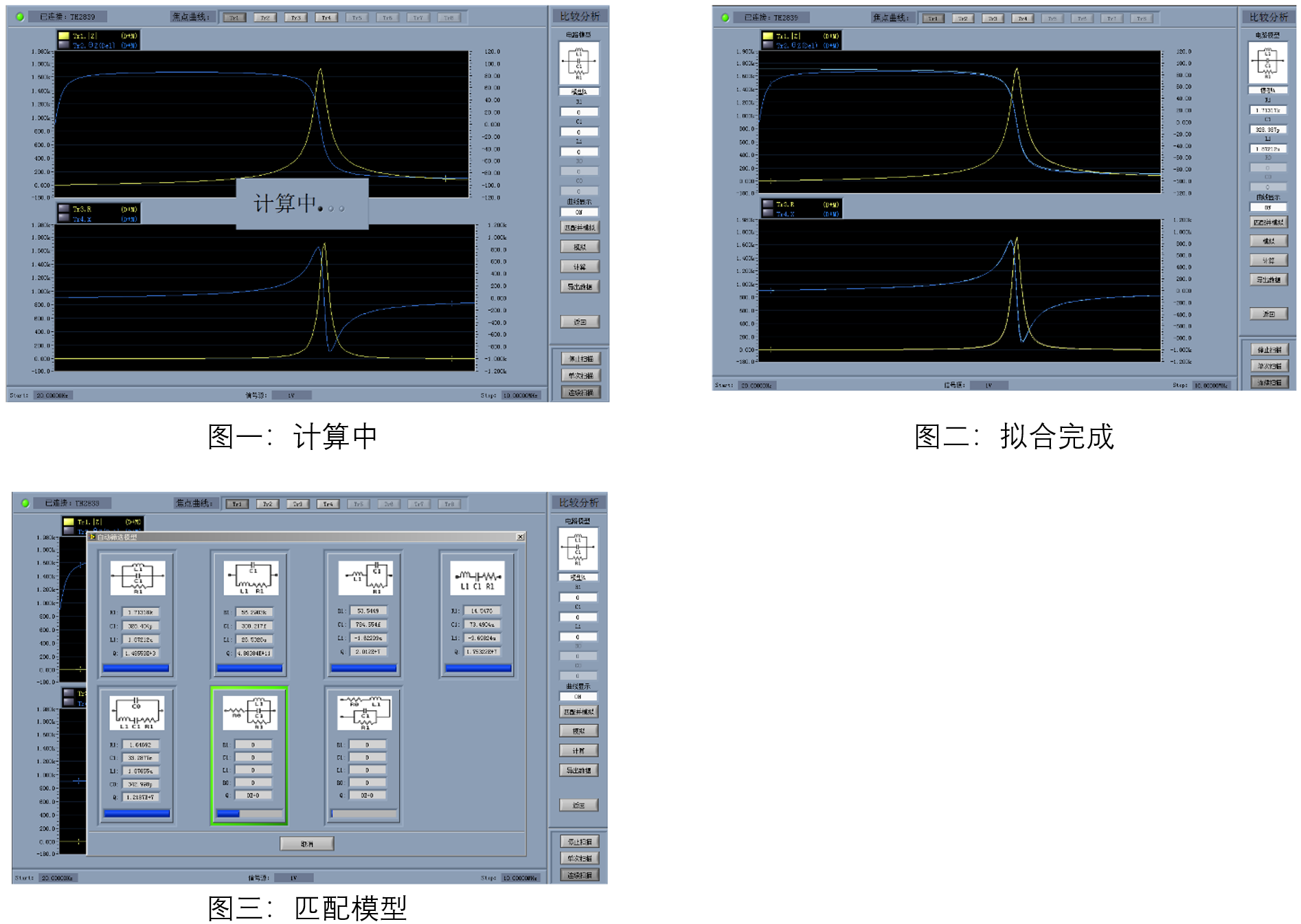现实生活中不同类型的器件可以被等效成简单的3-4个器件组成的电路模型。阻抗分析仪上位机提供了7种基本的电路模型用于等效这些器件。本软件还提供了自动匹配功能,即如果被测件为黑盒时,本软件自动匹配与之*符合的模型并进行参数的计算。您可以通过仿真的等效电路参数值的阻抗拟合曲线与实际测量的阻抗曲线进行对比,还可以通过您输入的参数按照您选择的模型进行拟合。此功能等效的电路模型可以直接输出成TXT文档方便用户保存使用。